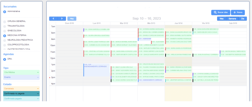 En esta sección, tendremos la capacidad de agendar citas y eventos en las agendas previamente configuradas. Es importante llenar los campos obligatorios para crear un agendamiento, y se recomienda completar todos los campos adicionales para tener información completa en el sistema.