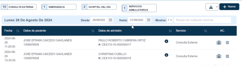 Es fundamental destacar que, si el paciente se someterá a procedimientos junto con una consulta médica o más de una consulta médica, se generará una admisión separada para los procedimientos y otra para cada consulta.