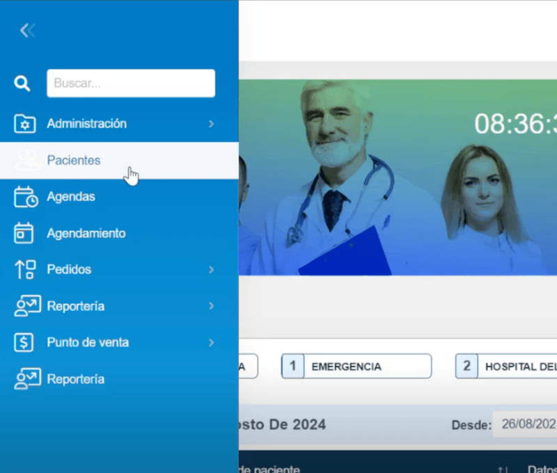 Dirigirse al panel de la izquierda y clickear sobre el módulo de pacientes: