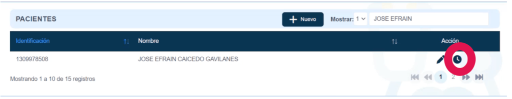 También existe un buscador, arriba a la derecha, que permite buscar a un paciente por su nombre o su número de identificación.