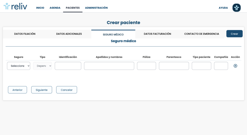 – Póliza: Número de la póliza de seguro médico del paciente, en caso de que aplique.